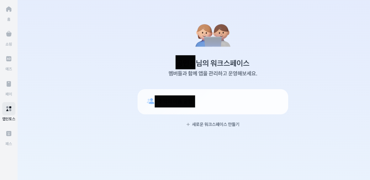 앱인토스 메뉴를 누르시면 본인의 워크스페이스가 나와요.